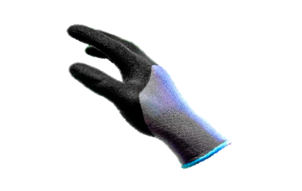 Guante nylon gris c/palma nitrilo arenoso negro en palma y 3/4 dorso. Tallas: 7, 8, 9.
